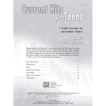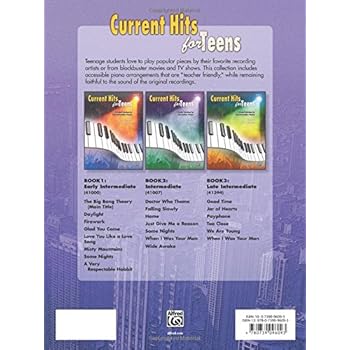 Teenage students love being able to play popular pieces by their favorite recording artists or from blockbuster movies and TV shows. This collection includes accessible arrangements of pop and movie hits from Doctor Who, fun., Bruno Mars and many more! The arrangements are "teacher friendly," while remaining faithful to the sound of the original recording. In this intermediate collection, 16th-note rhythms are introduced, as well as octaves and increased left-hand arpeggiation. Titles: Doctor Who Theme (Doctor Who) * Falling Slowly (Once, the Tony Award-winning Broadway Musical) * Home * Just Give Me a Reason * Some Nights * When I Was Your Man * Wide Awake.